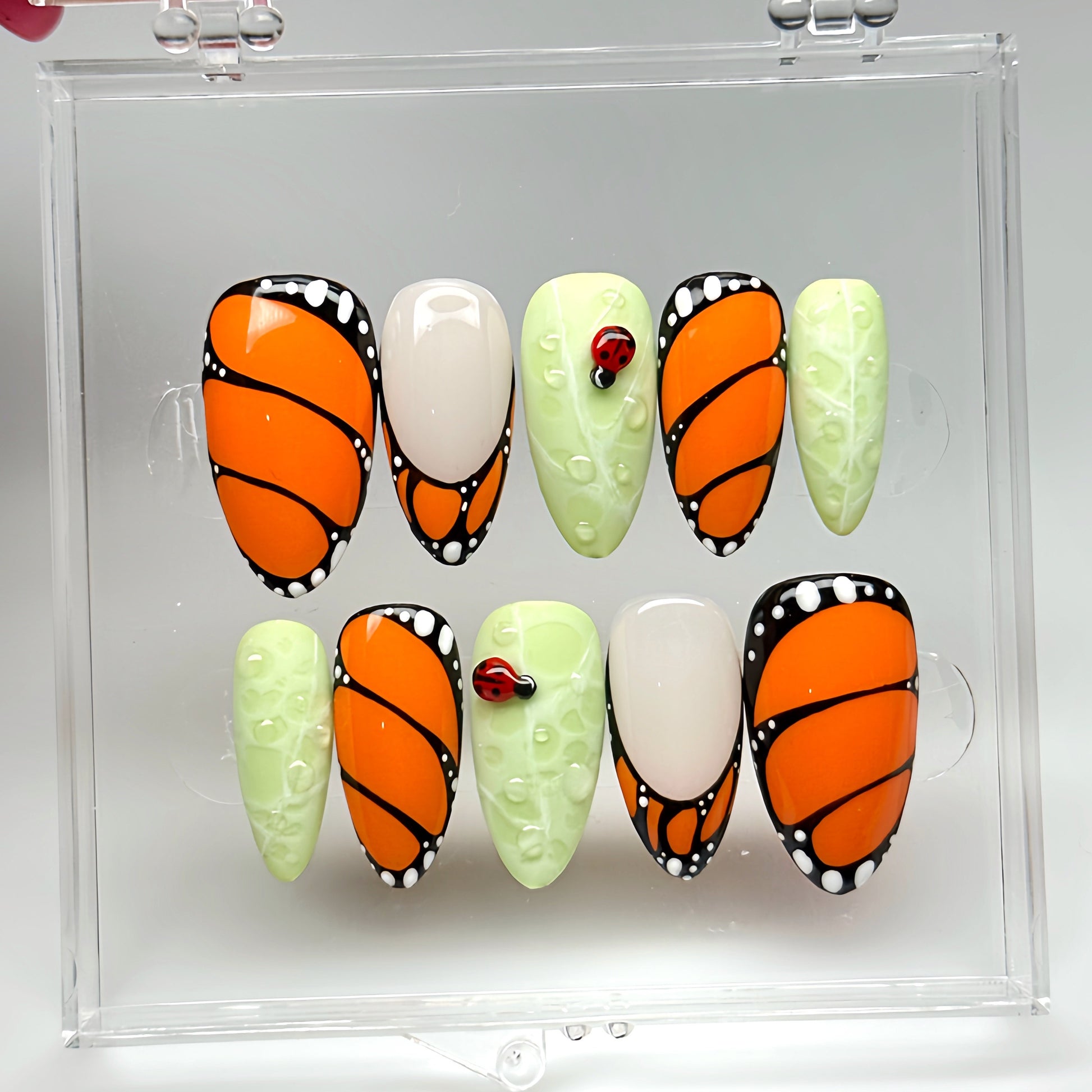 10 hand-painted nails in your selected size and shape