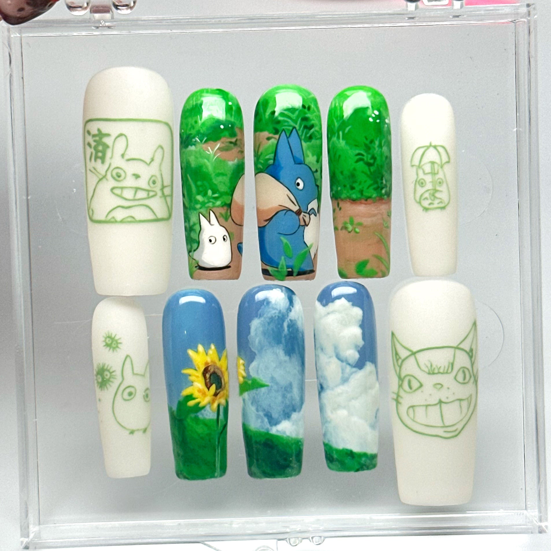 For custom sizing, select "Custom", at checkout and provide your individual nail sizes in the order of Thumb, Index, Middle, Ring, Pinky. Example: 1, 4.5, 4, 6, 8 or 15mm, 11mm, 12mm, 10mm, 9mm